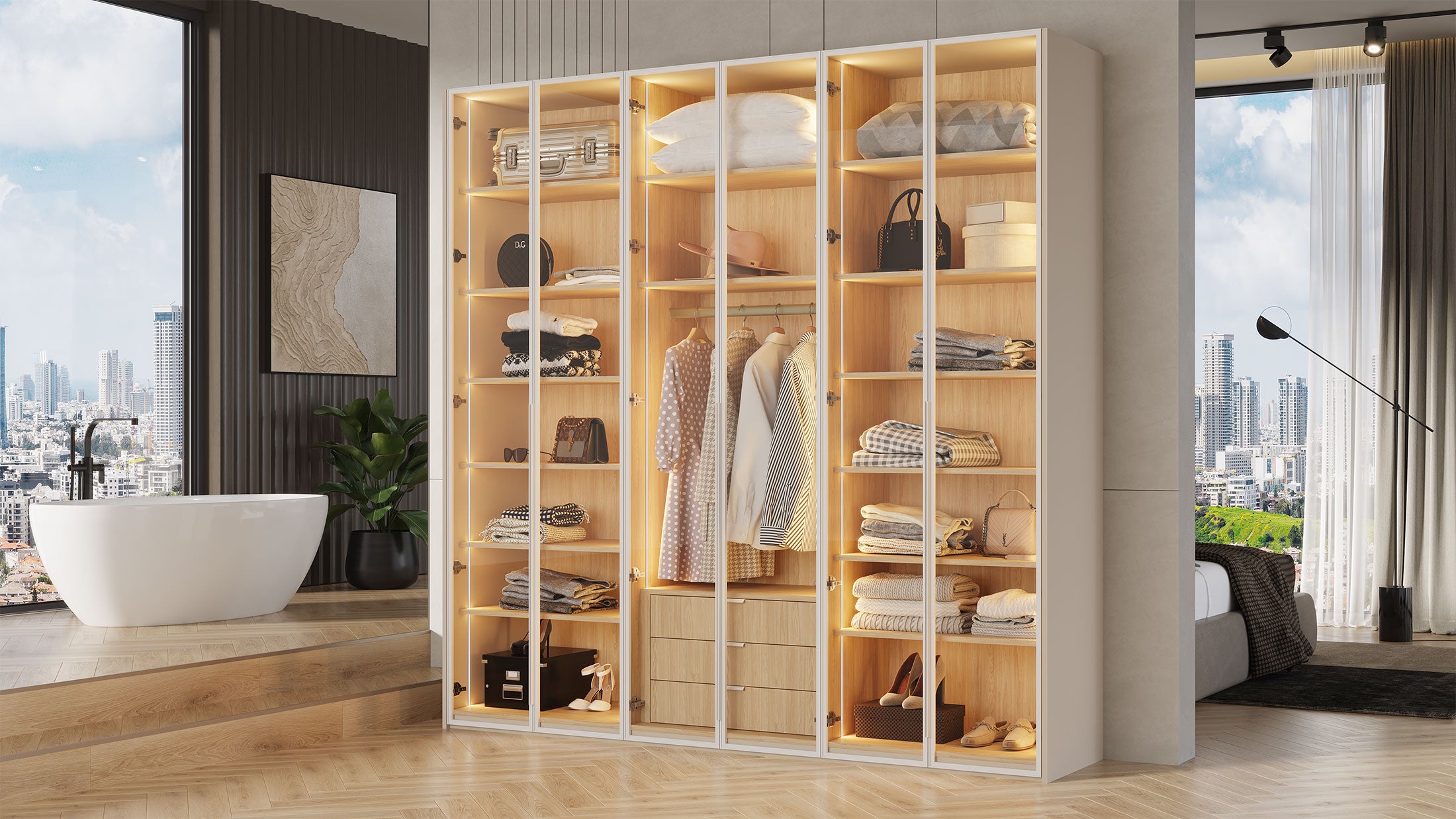 תאורת LED פנימית שתאיר כל תא ותעניק לארון שלכם מראה יוקרתי, נקי ומואר — מושלם לסדר, נוחות ועיצוב ברמה גבוהה.